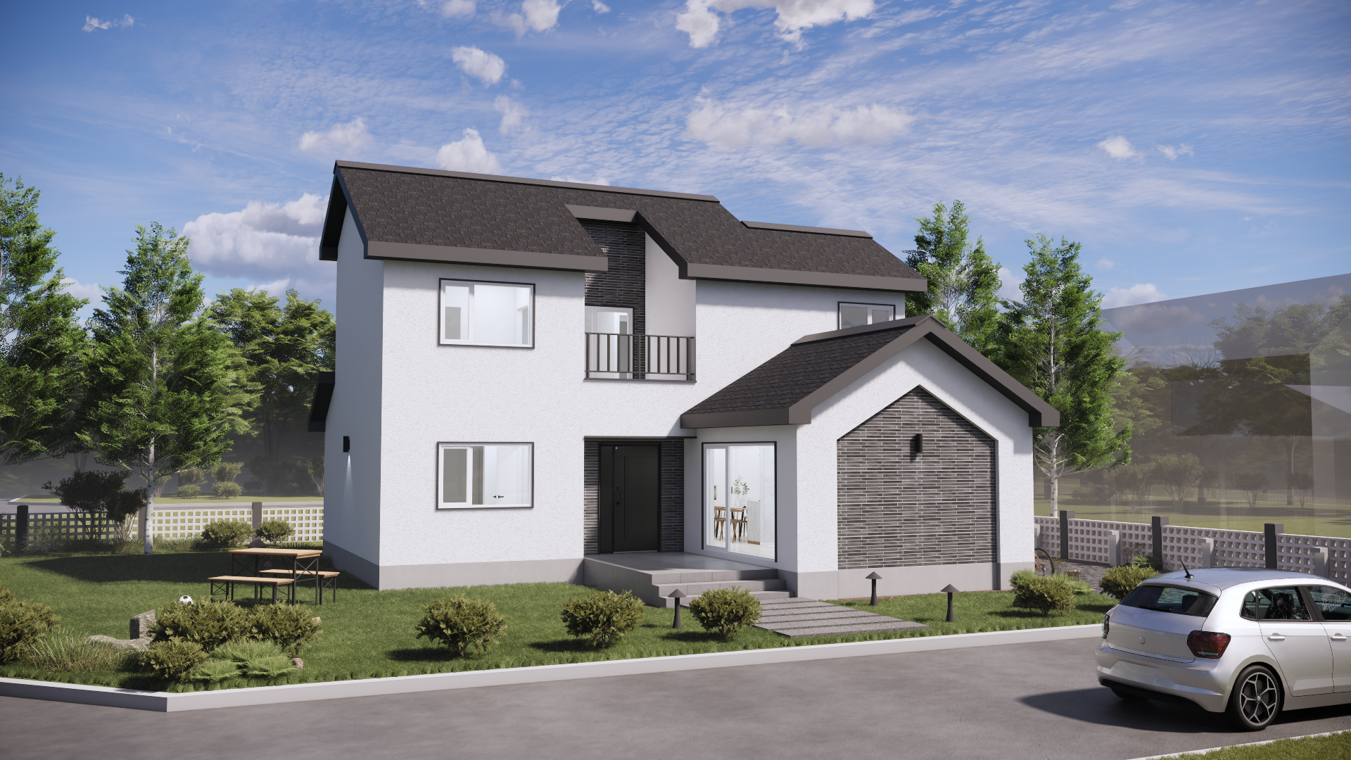 안정적인 박공지붕과 모던한 외관, 그리고 실용적인 동선이 조화를 이루어 일상에 여유와 편안함을 더해주는 단독주택입니다.