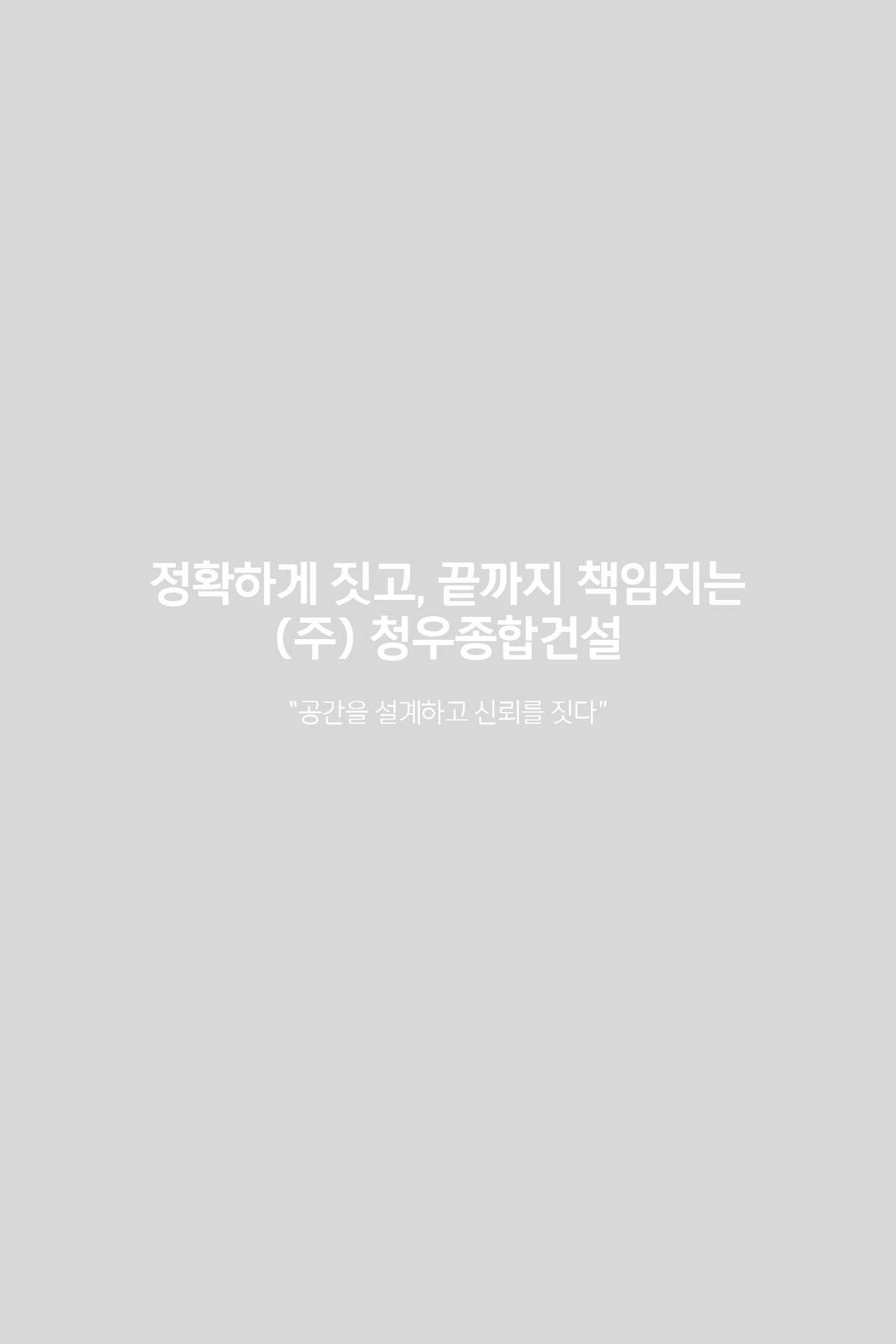 상호명 : 청우종합건설 | 대표자 : 조인옥 | 사업자등록번호 : 780-86-03034주소 : 경기도 용인시 처인구 양지면 한터로 441, 3층 | E-Mail : chungwoocon@gmail.com대표번호 : 1660-0484 | FAX : 0503-8379-4269Copyright © Chungwoo Construction. All rights reserved.