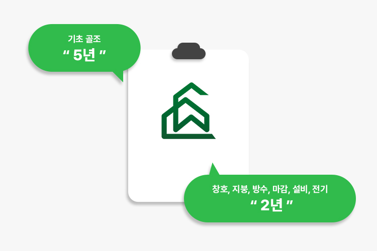 창호·지붕·방수·마감·설비·전기에 대해 2년의 하자담보 책임기간을 제공합니다.